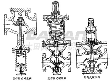直接作用波紋管式減壓閥 | 出口側(cè)壓力增加,波紋管向上運(yùn)動,閥開度減小,流速增加,壓降則該拿大,閥后壓力減小,出口側(cè)壓下降。波紋管向下運(yùn)動,閥開度增大,流速減小,壓降減少,閥后壓增大。閥后的出口壓力始終保持由整定調(diào)節(jié)螺釘整定的恒壓。 | ![]() |