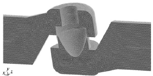 圖1為所建立的調(diào)速閥模型??紤]閥內(nèi)流動為面對稱結(jié)構(gòu),建立三維軸對稱模型,節(jié)約計(jì)算資源。