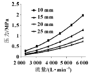 從圖3中可以看出: 固定開口度時,隨著流量的增加; 進(jìn)口壓力增加。尤其是小開度時,進(jìn)口壓力會急劇增加,這時閥內(nèi)節(jié)流口處最低壓力會低于大氣壓力,出現(xiàn)氣穴甚至氣蝕,影響流體的流動連續(xù)性,在實(shí)際選用調(diào)節(jié)閥時要避免此工況的出現(xiàn); 開度大時,流量的增加所帶來的壓力變化逐步較小。