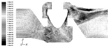 采用CFD軟件對閥內(nèi)流場進(jìn)行了仿真計(jì)算,同時給出流場壓力的輪廓圖和速度的矢量圖的可視化結(jié)果,便于流道的改進(jìn)。