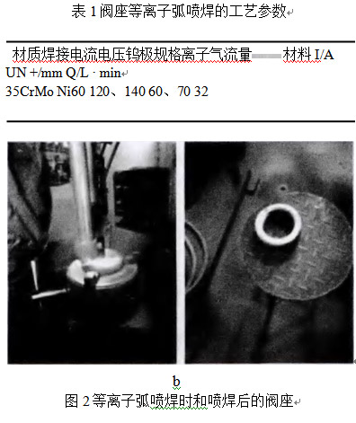 生產(chǎn)實(shí)踐證明,平行閘板閥閥座采用等離子弧噴焊工藝,與氧一乙炔氣焊手工方式焊接工藝相比,不但噴焊層組織致密、顯著提高了質(zhì)量,而且改善了施焊者勞動條件,極大提高了生產(chǎn)效率,效果較好