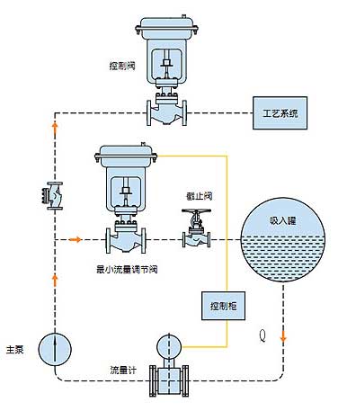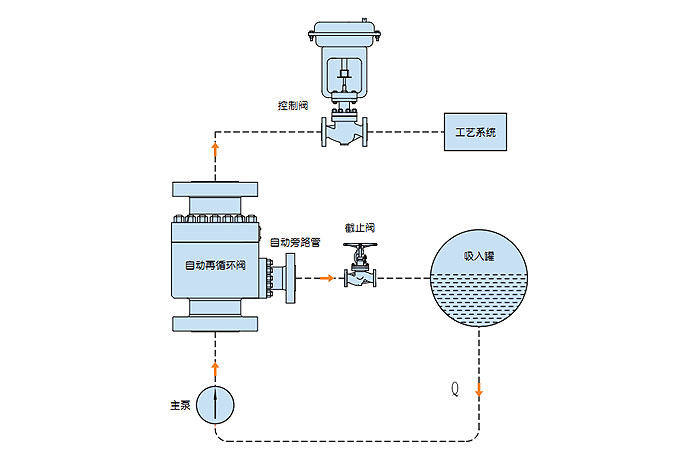 現(xiàn)代工業(yè)設(shè)備工藝過(guò)程中,要求離心泵基本上都是在變流量的狀態(tài)下工作,這就需要在工藝過(guò)程中有設(shè)置自動(dòng)控制設(shè)備。然而咋離心泵在低于負(fù)荷運(yùn)行時(shí)會(huì)出現(xiàn)過(guò)熱、嚴(yán)重噪聲、不穩(wěn)定和氣蝕而引起泵的損壞。這是需要一種自動(dòng)再循環(huán)設(shè)備,在泵低于負(fù)荷運(yùn)行時(shí),通過(guò)旁路實(shí)現(xiàn)泵最小流量回流循環(huán)。